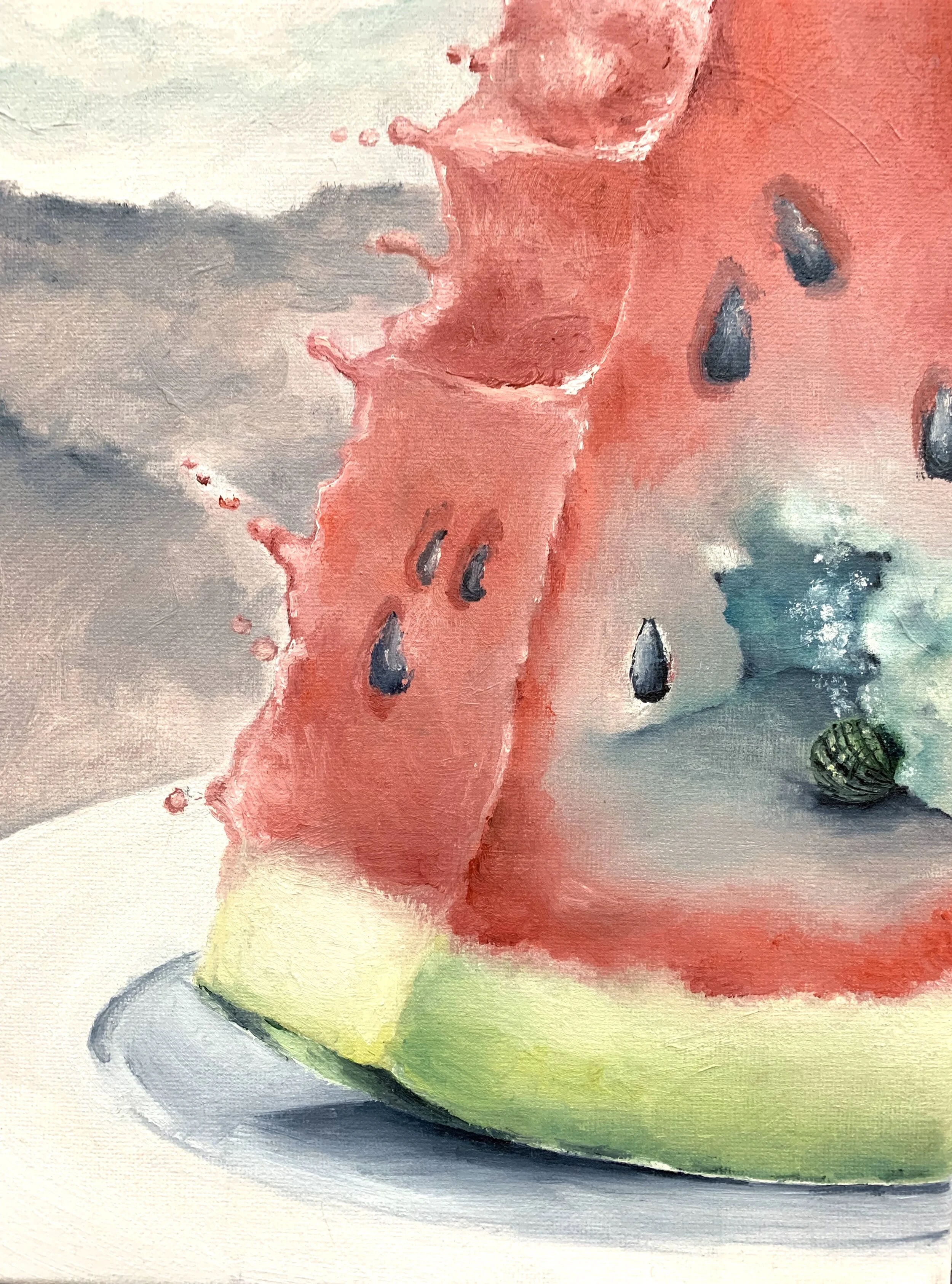 Cuisine plays a major role in the development of my practice and body of work because cuisine, to me, is a universal language that viewers from any cultural background can relate, therefore by highlighting certain cuisines and creating fantasy-like landscapes and characters I am able to portray a sense of playfulness, while being informative to the viewers and appreciative of my culture. My work aims to challenge the viewer to look beyond a simple landscape, develop a hint of connection with those cultures, and lastly develop a new appreciation for foreign and diverse cultures.