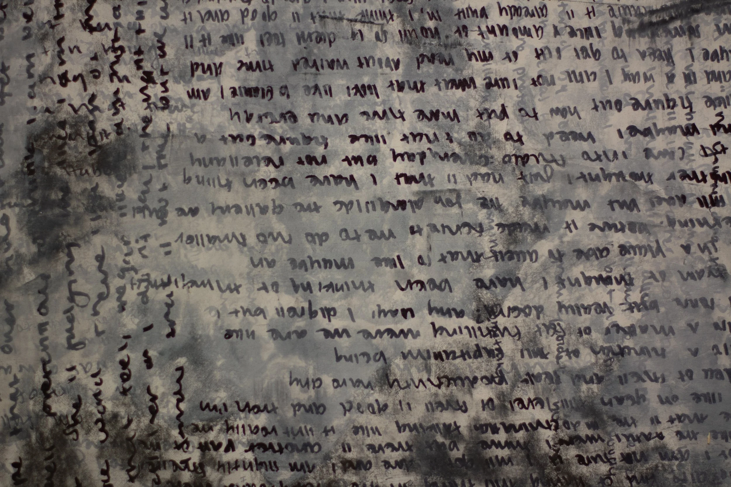 Through mixed media pieces, I explore the connections between memory, loss, love, and personal identity. Within my drawings, I utilize handwritten text to journal my thoughts directly onto each piece, writing in a stream of consciousness to archive my experiences, and soon to be memories, as they are being created. The ink from the text layered with the graphite from detailed, abstracted drawings meld together to form an amalgamation which is my existence as a person. However, I also include layers of semi-opaque gesso which brings about erasure, referencing my obsessive nature to fixate on what is slipping away in the form of self-inflicted deterioration.