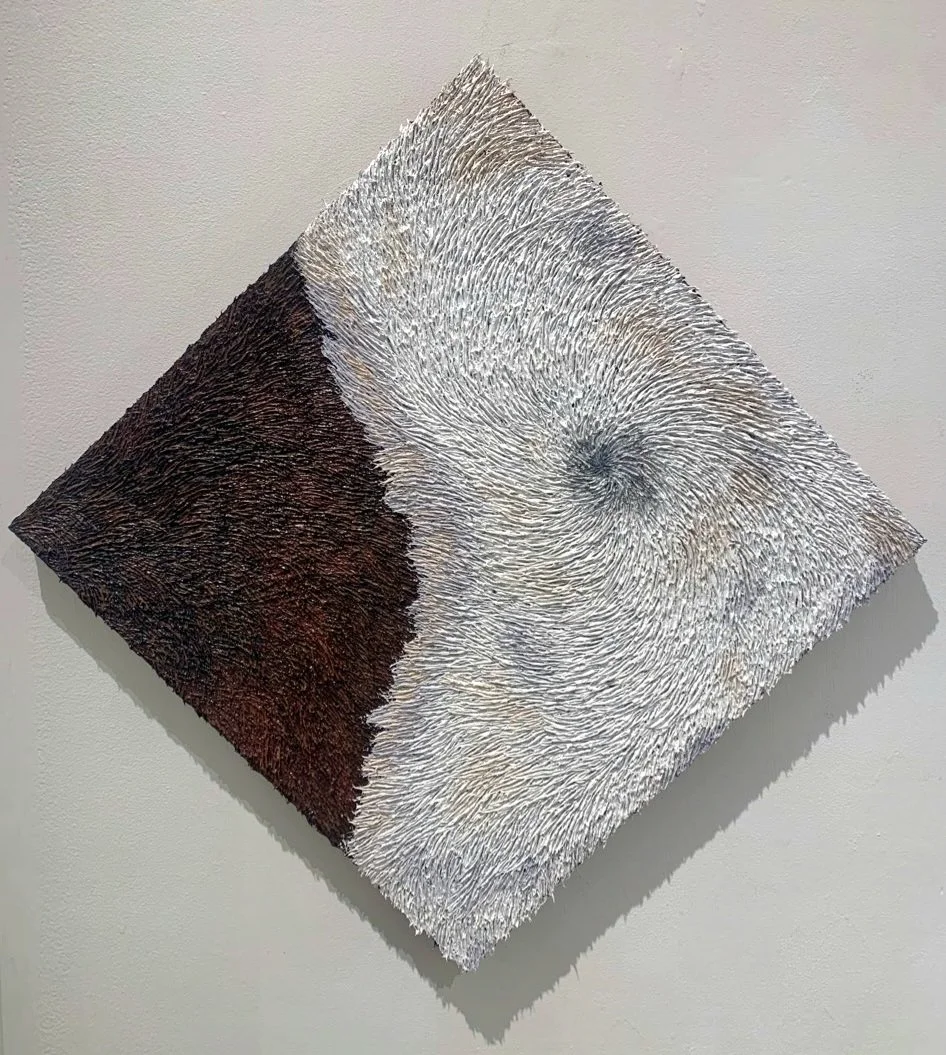 This meticulous repetition entails hyper-fixated focus that it becomes an intimate moment with the piece. It is a mediative process, providing a sense of control and release, feeding my perfectionistic tendencies as I become engrossed into the technique for hours at a time. It is then when I feel the most in control of my handling of the paint, falling into a trance with paying attention solely to the canvas, and not remembering myself as who I was separate from the process of creating these textures