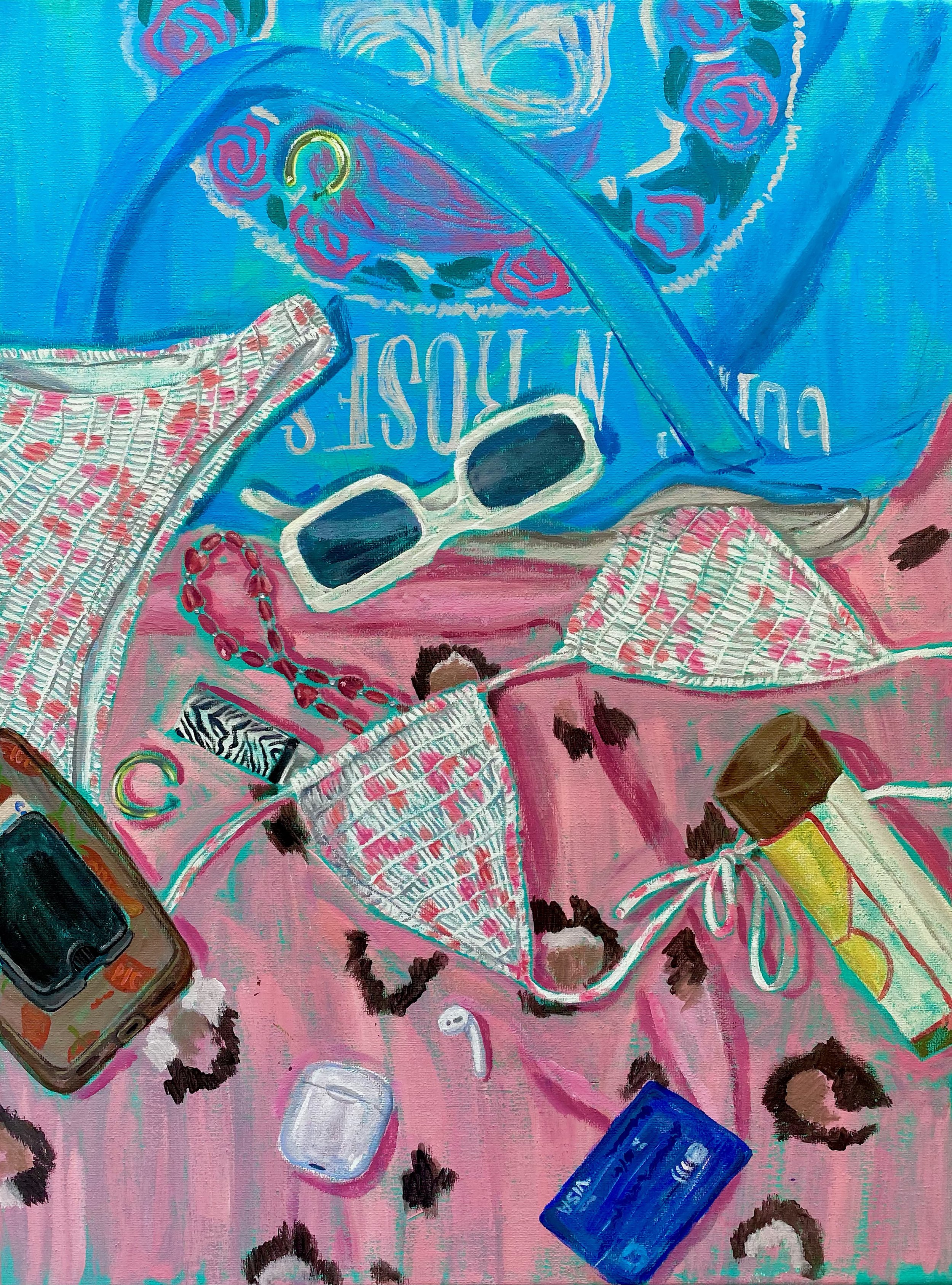 My current practice revolves around exploring the inherent meanings embedded within objects and materials. I am intrigued by the connection between our personal identities and the things we choose to surround ourselves with. Despite their simplicity, the objects we surround ourselves with provide valuable insights into our identities. By depicting both my personal belongings and those of others, my paintings shed light on their essence and offer deeper glimpses into who they are and who I am. I am drawn to the immediacy of these objects and what they reveal about our current state. Vibrant palettes and unconventional color choices allow me to transform ordinary objects into whimsical forms. Color serves as a way to undermine the obvious, and functions as a kind of artistic control. The everyday is subverted by the artist's intent, transforming the ordinary into an impulsive expression of my desire at that exact moment. Ultimately, my paintings serve to elevate the seemingly mundane into signifiers of identity.